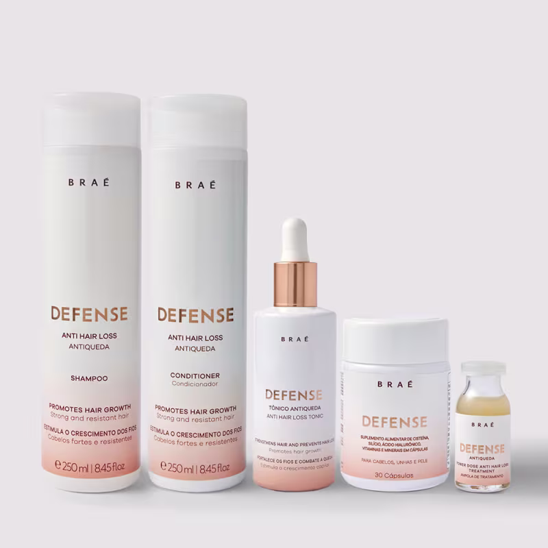 O Tônico Condicionante Defense da BRAÉ possui uma associação de ativos de alta performance, comprovadamente eficazes no tratamento antiqueda. Ele age diretamente no bulbo capilar, estimulando o crescimento dos fios, evitando a queda e regulando as diferentes fases de crescimento dos cabelos. Eficácia antiqueda comprovada com o uso completo da linha.
