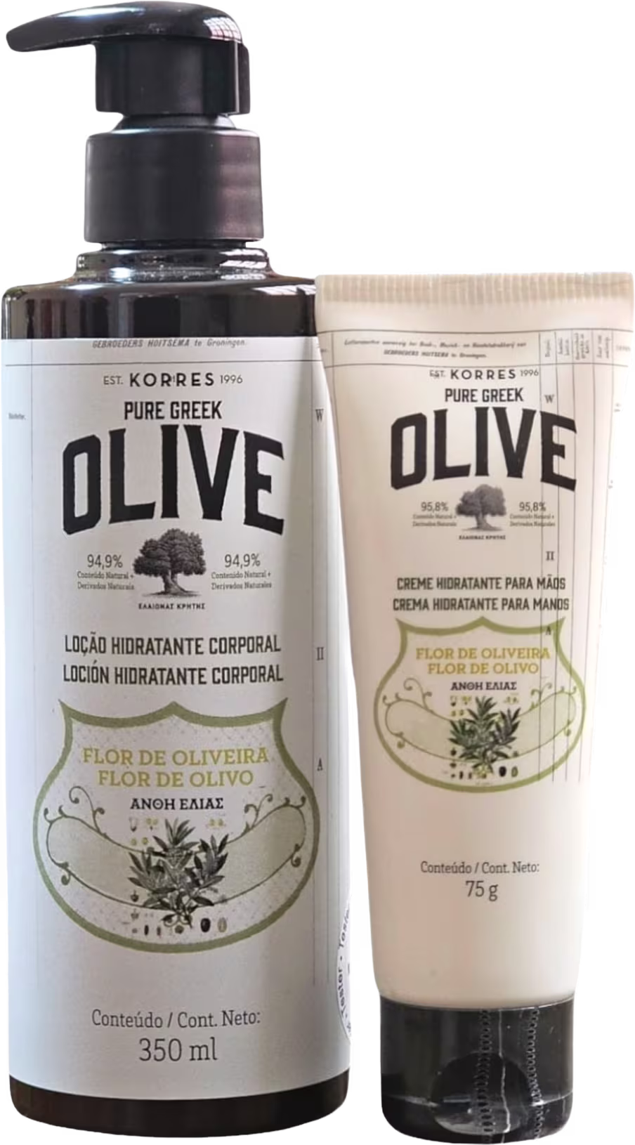 Ideais para todos os tipos de pele, os produtos do Kit Korres Olive proporcionam hidratação, toque macio e higienização, com um toque perfumado inspirado na leveza das pétalas de Flor de Oliveira.