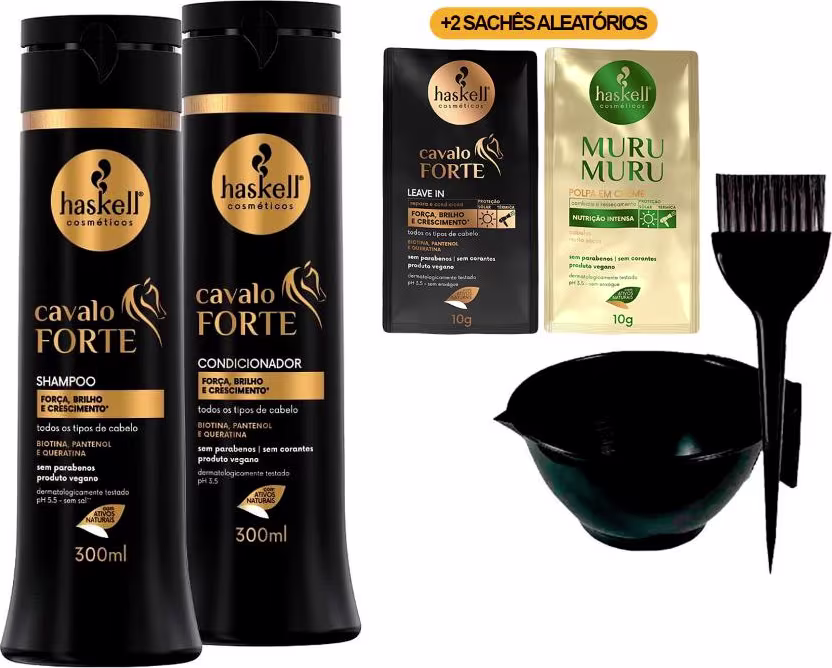 Haskell Cavalo Forte Shampoo/Cond 300ml +Cumbuca/Sachês