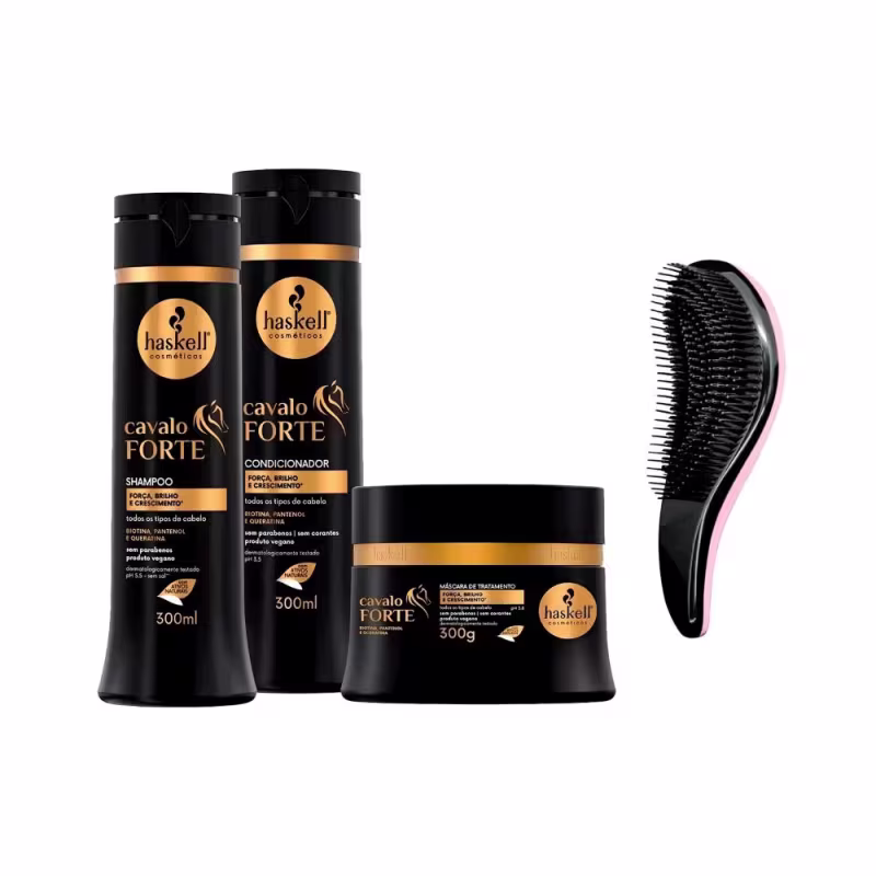 Descrição: Apresentamos a linha Cavalo Forte da Haskell, uma solução poderosa e inovadora para fortalecimento capilar que proporciona resultados visíveis e duradouros. Cada produto desta linha foi cuidadosamente formulado com ingredientes de alta qualidade, nutrir, fortalecer e revitalizar os cabelos, promovendo uma aparência saudável e radiante.