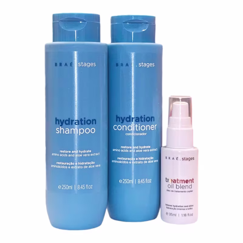 Hidratação completa para cabelos radiantes! O Kit Braé Stages Hydration é a solução perfeita para quem busca cabelos saudáveis, macios e com brilho intenso. Com shampoo, condicionador e óleo, você garante uma rotina de cuidados completa, nutrindo seus fios da raiz às pontas. Ideal para cabelos secos e danificados.