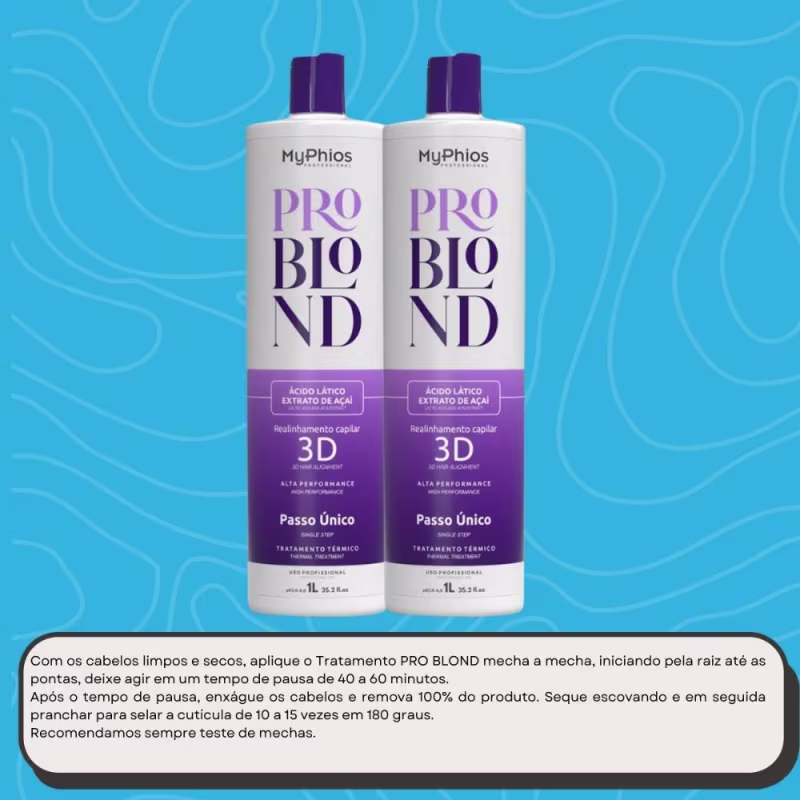 Realinhamento Pro Blond MyPhios é um realinhamento térmico de textura leve, suave e de rápida absorção. Realinhamento orgânica, desenvolvida para cabelos loiros.