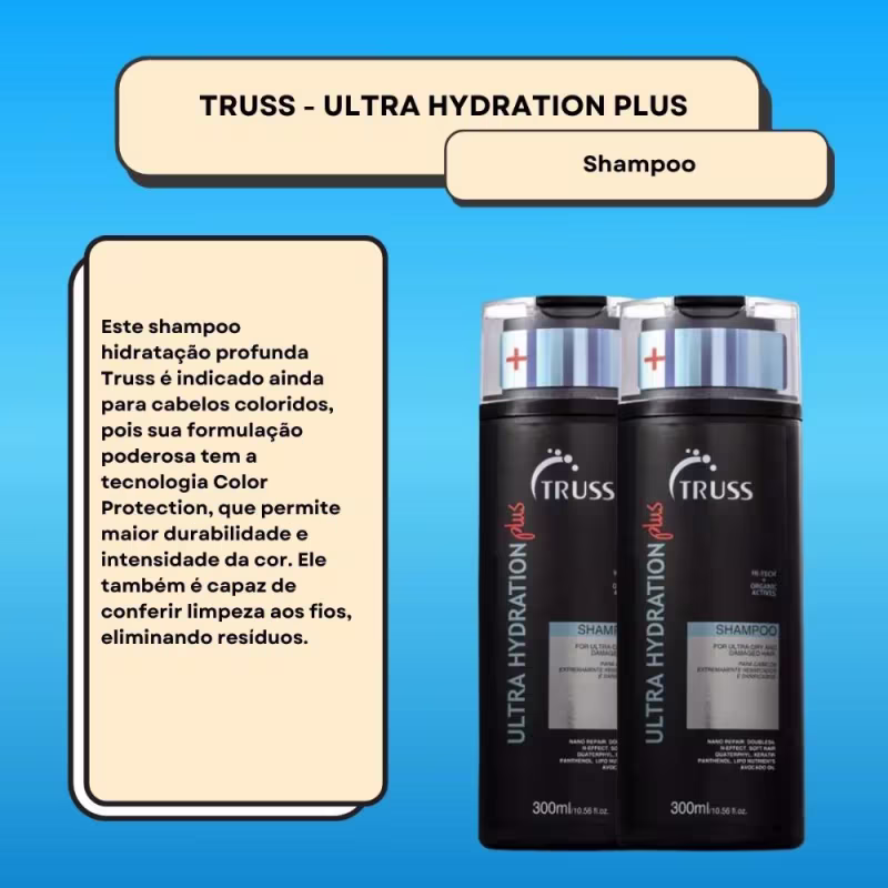 Contém:02 Unidades Truss Ultra Hydration Plus Shampoo 300mll