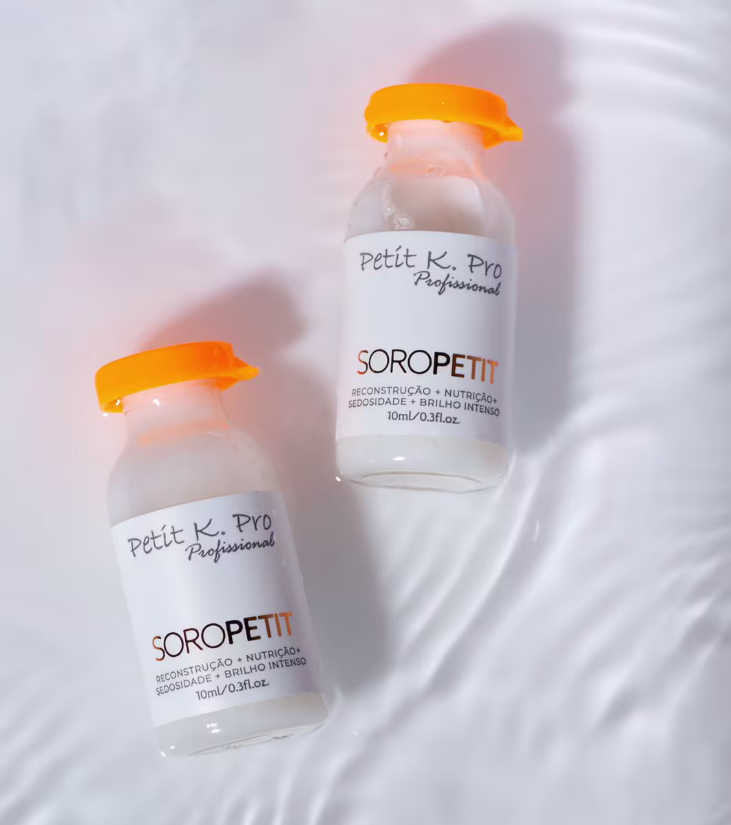 K.Pro Soro Petit - Ampola Capilar 10ml (3 unidades): para todos os tipos de cabelo. Promove resultado imediato, deixando os fios sedosos, resistentes e intensamente brilhantes. Enriquecida com nutrientes especiais e extrato de marshmallow, a ampola K.Pro Soro Petit renova o cabelo, garantindo fios mais bonitos e saudáveis.