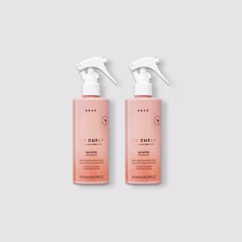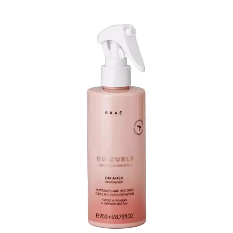 Go Curly Day After é um spray revitalizante que redefine os cachos em segundos. Sua fórmula leve nutre profundamente os fios, devolvendo a umidade e a hidratação necessárias para remodelar os cachos sem a necessidade de molhar. Ideal para usar entre lavagens e manter o cabelo sempre no seu melhor estado, sem frizz e com aquele movimento natural. Se você busca definição, hidratação e um cabelo cheio de vida, a linha Go Curly Cachos e Crespos da BRAÉ é a sua escolha perfeita!
