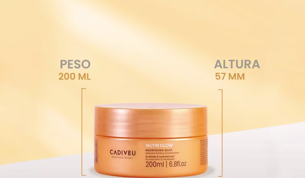 Cadiveu Professional Nutri Glow - Máscara Nutritiva Condicionante 200ml: tratamento completo para fornecer a reposição lipídica que os fios mais secos necessitam, alinhando as cutículas para trazer de volta o brilho, movimento, sedosidade e vitalidade. Com tecnologia oil elixir oferece um poderoso tratamento de máxima recarga de nutrição que resgata os cabelos secos e sem brilho. Sua fórmula torna os fios 8x mais brilhantes e hidratados, proporcionando uma ação antifrizz de longa duração.