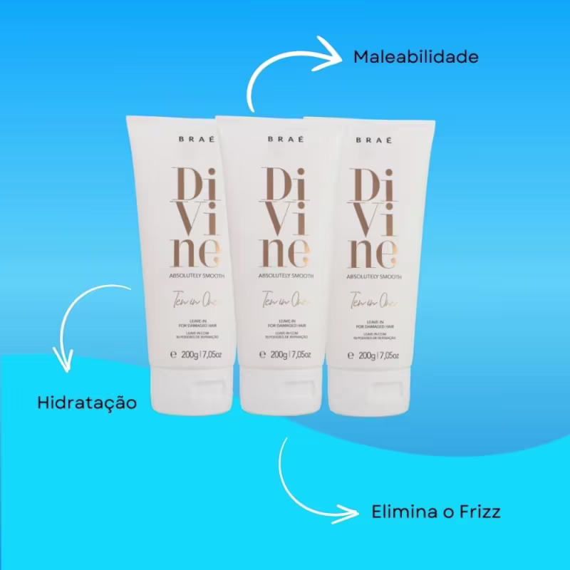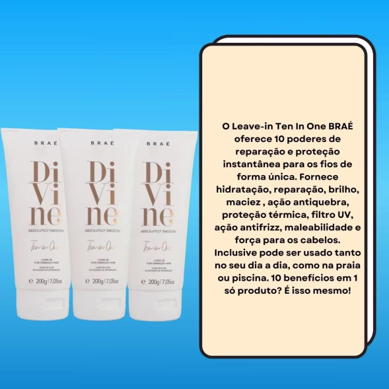Contém:03 Unidades Braé Divine Ten in One 10 in 1 Leave-in 200g