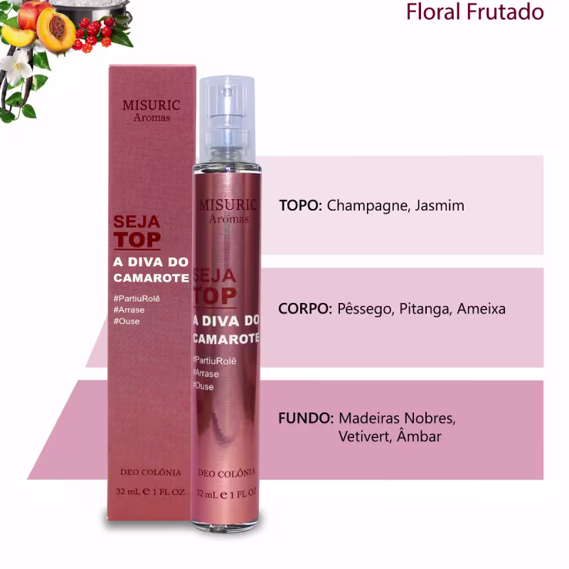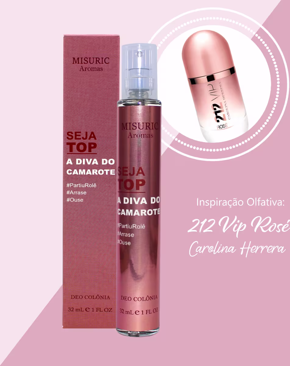 “Uma fragrância badalada e vibrante para quem é a DIVA DO CAMAROTE. SEJA TOP com esta Deo Colônia de Misuric Aromas!”