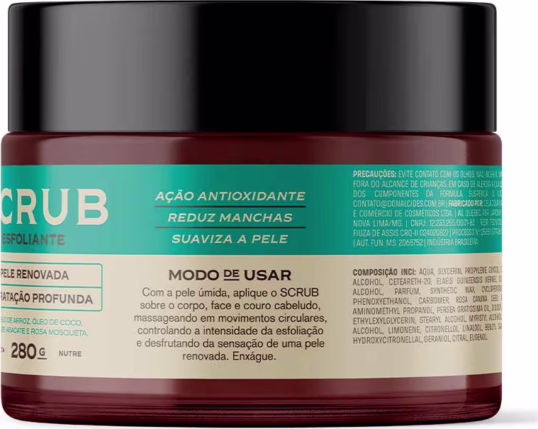 Não sei o CEPExperimente o poder multifuncional do Scrub Therapy Don Alcides, o esfoliante ideal para o cuidado completo do couro cabeludo e do corpo. Formulado com microcápsulas de farelo de arroz, óleo de coco, óleo de abacate e rosa mosqueta, ele remove resíduos, combate a oleosidade e proporciona um efeito refrescante e relaxante, transformando sua rotina de cuidados em um verdadeiro ritual de bem-estar.