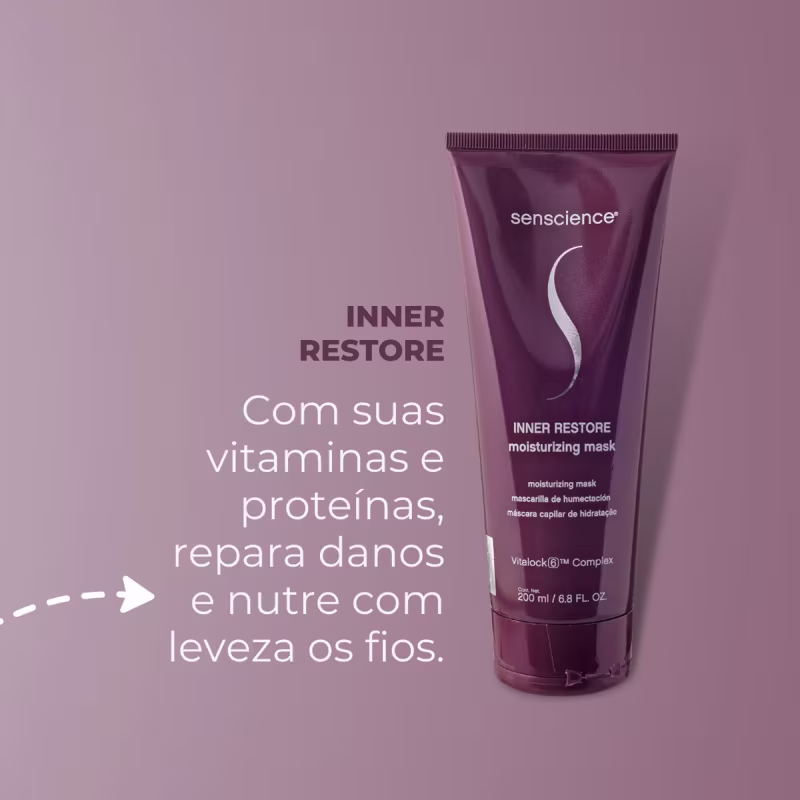 Senscience Inner Restore Moisturizing - Máscara Capilar 200ml: para cabelos secos ou danificados. Restaura, fortalece e hidrata profundamente enquanto restabelece os níveis de água dentro do fio.