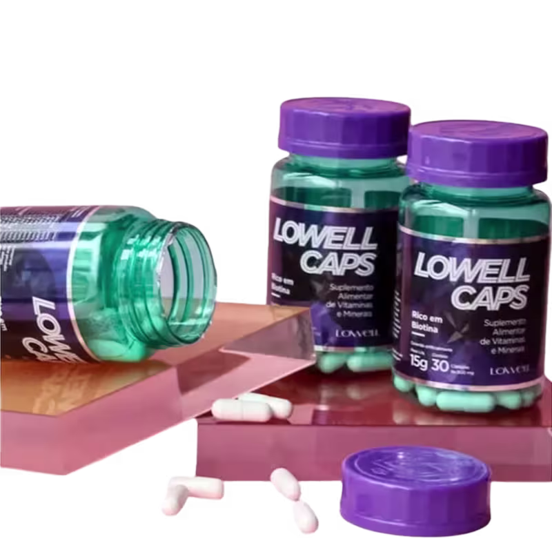 As cápsulas de Lowell Caps são enriquecidas com vitaminas e minerais, que estimula o crescimento saudável do cabelo em até 4cm ao mês, além de fortalecer os fios e reduzir a queda