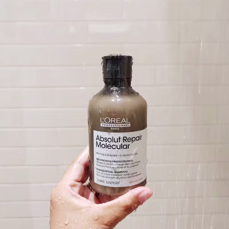 Não sei o CEPL'Oréal Professionnel Absolut Repair Molecular - Shampoo 300ml: repara a estrutura macromolecular do fio, promovendo força, nutrição, movimento e maciez. Ele é uma inovação da L'Oréal Advanced Research, desenvolvida para revitalizar o cabelo de maneira nunca vista antes. Revolucionária reconstrução completa da estrutura molecular do cabelo. Ideal para todos os tipos de cabelos danificados, sejam coloridos, descoloridos ou naturais.