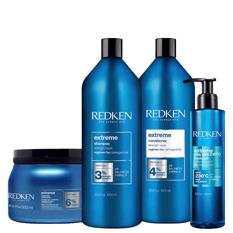 Redken Extreme - Shampoo 1L: é a solução ideal não apenas para reparar, mas também fortalecer o cabelo, evitando danos futuros. Contém aminoácidos, arginina e ácido cítrico. Sua fórmula potente limpa, fortalece e restaura o brilho do cabelo fragilizado, resultando em fios saudáveis e radiantes, com 73% menos quebra.