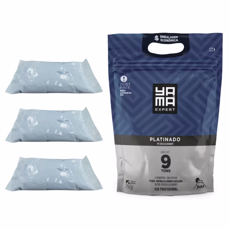 O Pó Descolorante Yamá Platinado foi especialmente desenvolvido para processos de descoloração que buscam atingir a tonalidade Platinada. Sua formulação com Pó Azul possui poder Antiamarelamento, minimizando o tom amarelado dos cabelos. Com alto poder de clareamento, abre até 9 Tons de forma segura e eficaz. Não levanta pó durante a utilização, graças ao sistema Dust Free.