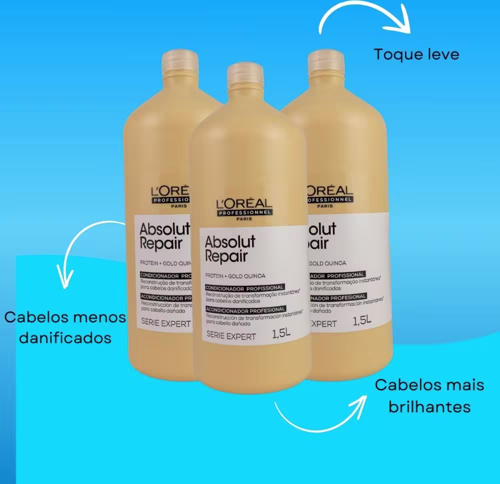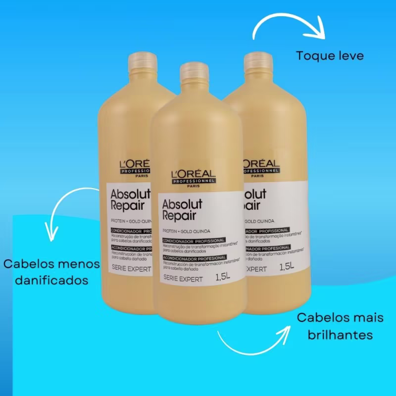 03 Unidades L'Oréal Professionnel Absolut Repair Gold Quinoa Condicionador 1,5L