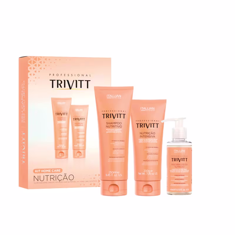 Não sei o CEPO Kit Nutrição Intensiva Com Máscara Líquida Trivitt foi desenvolvido para quem gosta de cuidar dos cabelos em casa proporcionando uma nutrição intensiva igual a de salão, ideal para cabelos secos, ressecados ou danificados por processos químicos e exposição ao sol, vento e poluição. Com ativos especiais, ele nutre profundamente, devolve a emoliência, sela as cutículas e mantém a hidratação por mais tempo, promovendo maciez e brilho intenso aos fios.