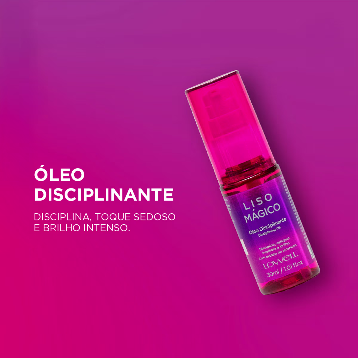 Lowell Liso Mágico - Óleo Capilar 30ml: proporciona proteção contra o frizz, selagem das cutículas e brilho 3D. Com fórmula poderosa e ultraleve, age nos fios deixando-os alinhados e com toque sedoso. Forma uma película protetora, prevenindo a formação de pontas duplas e arrepiados. Rico em antioxidantes, protege a cor do desbotamento e da perda de nutrientes. Tudo com brilho tridimensional que reluz com o movimento do cabelo.