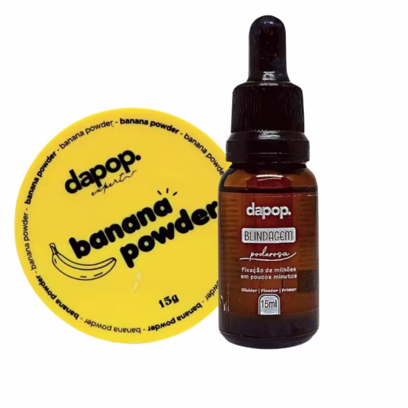 Eleve sua rotina de beleza com este kit indispensável que combina o poder do Pó Solto Ultrafino Banana Power da Dapop e a eficácia da Blindagem Poderosa.