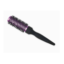Possui cerdas cerâmicas que facilitam o contato e a “pega” entre a escova e o fio, sua base metálica é vazada auxiliando na retenção e propagação do calor, facilitando a secagem e modelagem dos fios. Seu cabo é emborrachado, ou seja, antideslizante.