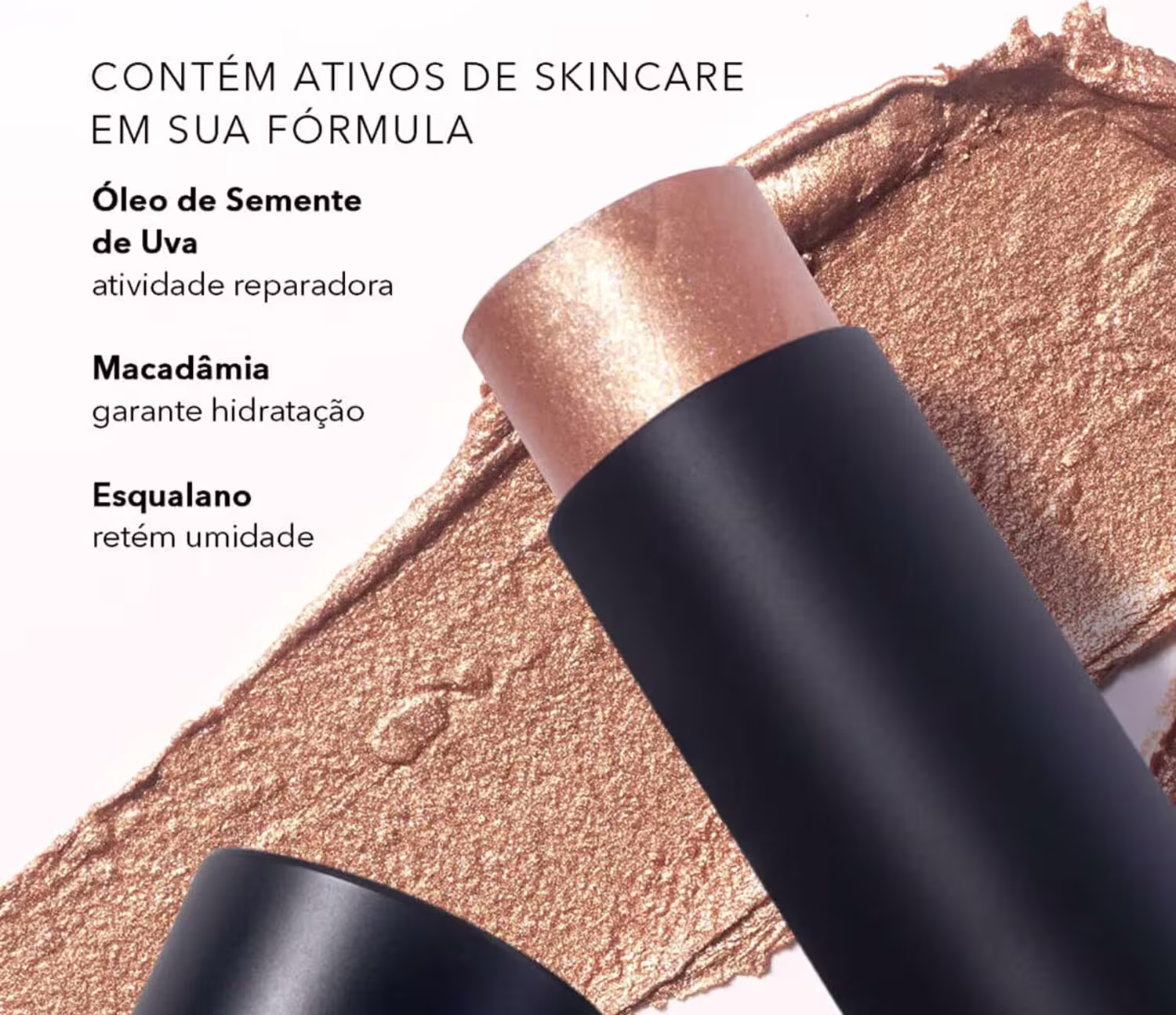 Iluminador: aplique o bastão nas laterais do nariz, abaixo das maçãs do rosto, nas têmporas e na ponta do queixo. Em seguida, esfume bem o produto com um pincel ou esponja para um acabamento natural.