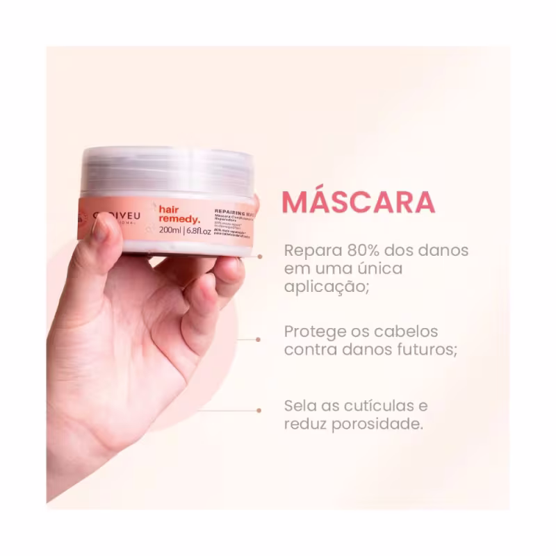 Em seguida, temos a Cadiveu Professional Essentials Hair Remedy Máscara (200ml), uma máscara de tratamento intensivo que promove a reconstrução capilar, reparando os danos e proporcionando hidratação profunda para cabelos mais fortes, saudáveis e brilhantes.