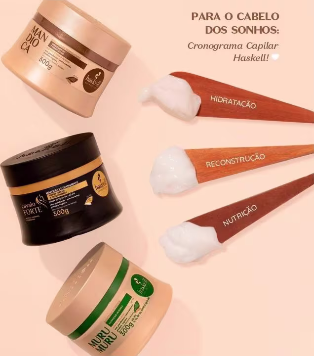 CRONOGRAMA CAPILAR HASKELL COMPLETO, CONTENDO AS 3 ETAPAS ESSENCIAIS.