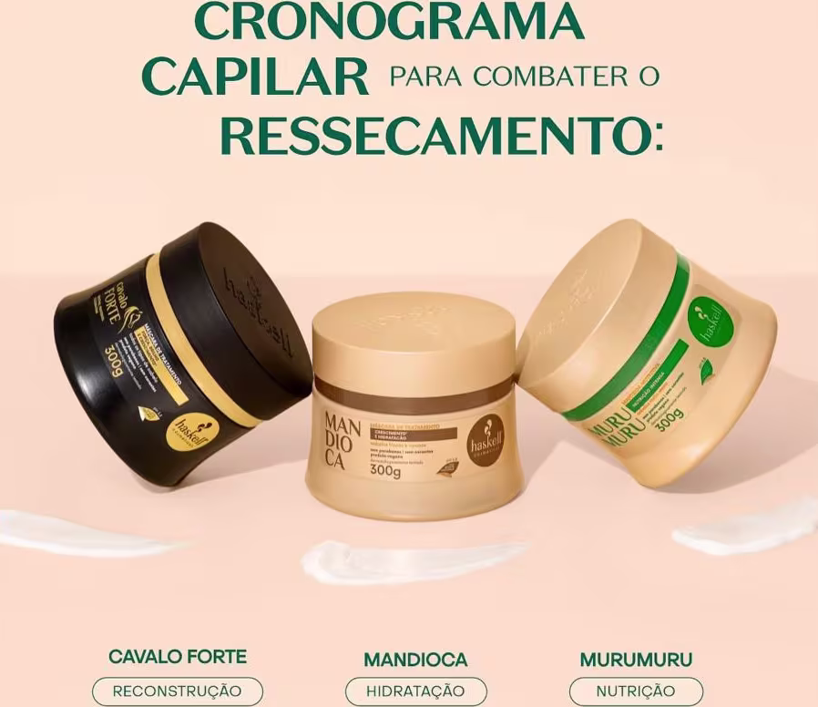 CRONOGRAMA CAPILAR HASKELL COMPLETO, CONTENDO AS 3 ETAPAS ESSENCIAIS.