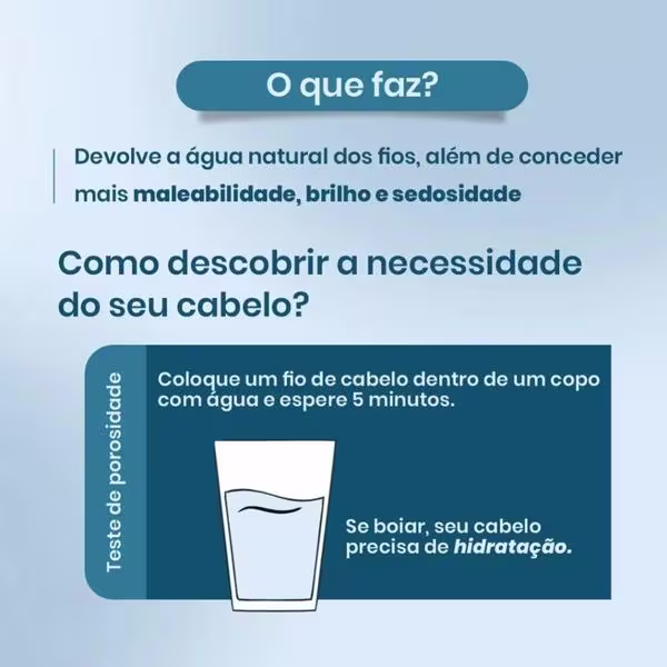 Devolve a umidade natural e a maciez dos fios;