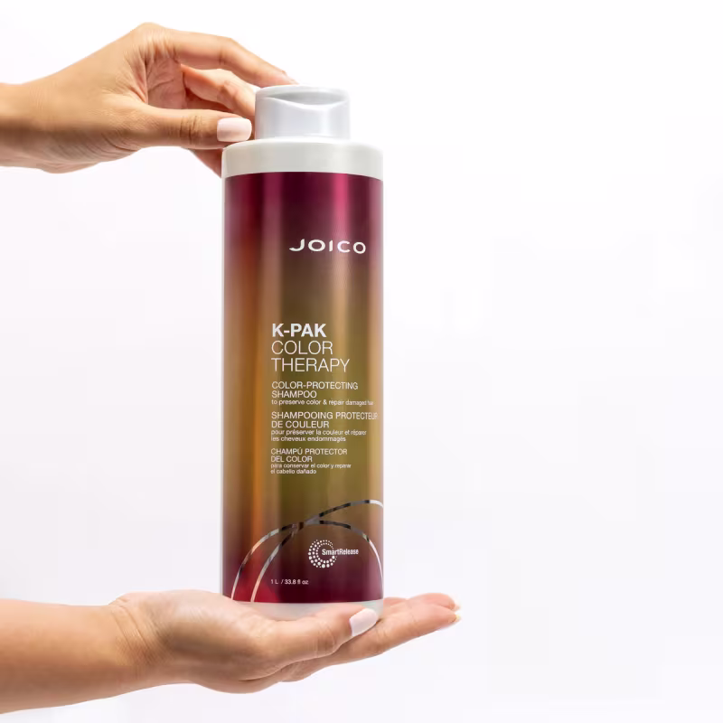 Joico K-PAK Color Therapy Smart Release - Shampoo 1L: limpa suavemente, auxilia na proteção da cor e restauração dos fios.