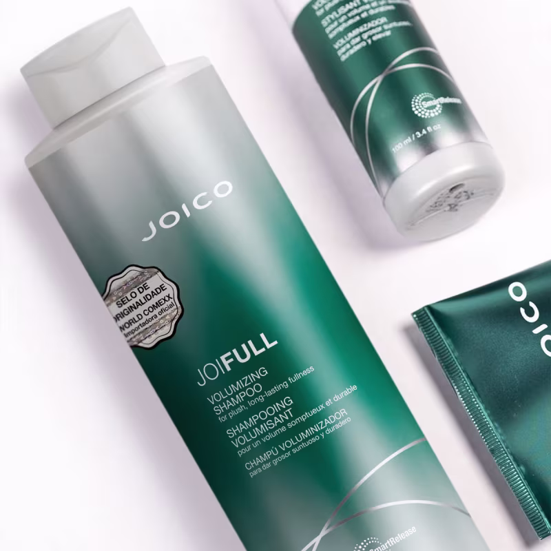 Joico Joifull Volumizing Smart Release - Shampoo 1L: para cabelos finos, promove volume duradouro. Agentes de limpeza retiram excessos de óleo e impurezas que pesam no cabelo enquanto o extrato de bambu, proteína de arroz e Flor de Lótus deixam o cabelo mais cheio e volumoso.