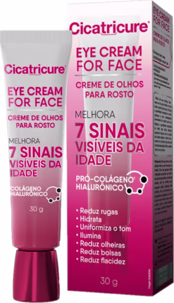 Cicatricure Eye Cream For Face - Creme de Olhos para Rosto 30g: creme de olhos para todo o rosto. Sua fórmula conta com uma combinação única de ácido hialurônico, peptídeos e vitaminas micronizadas que atuam em uma pele visivelmente mais jovem em apenas 7 dias. Reduz rugas, hidrata, uniformiza o tom, ilumina, reduz olheiras, reduz bolsas e reduz flacidez.