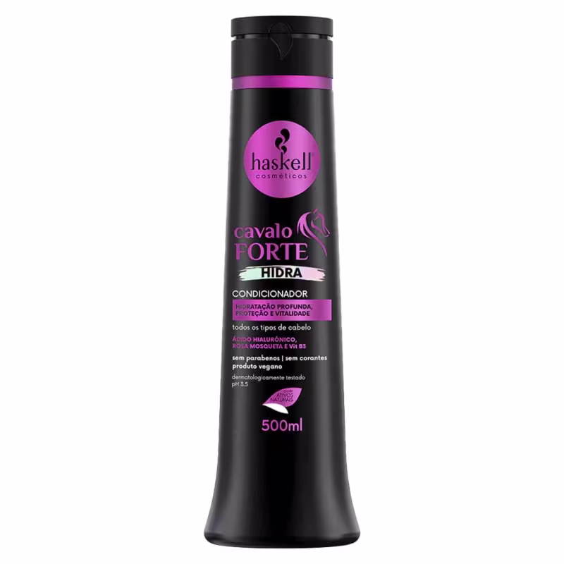Condicionador Cavalo Forte Hidra: hidratação prolongada e selamento das cutículas.