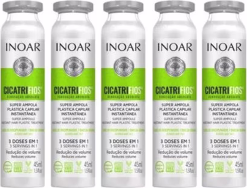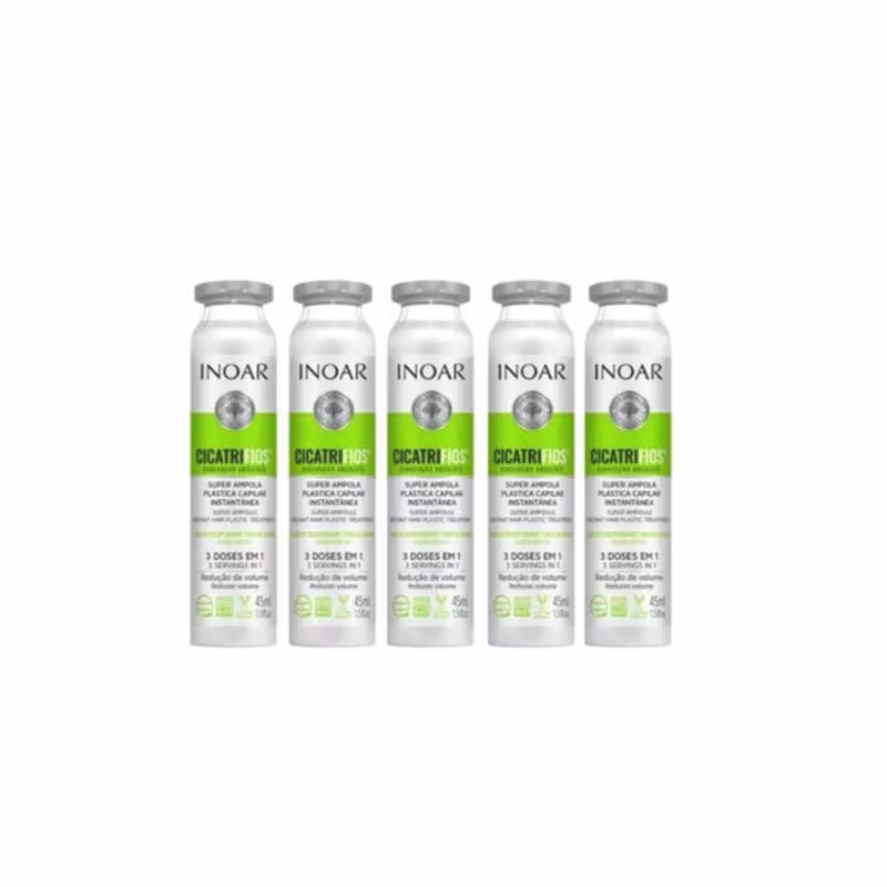 Inoar Cicatrifios Super Ampola promove uma plástica capilar instantânea que hidrata, alinha e renova a fibra capilar para que o volume e os fios rebeldes sejam diminuídos gradativamente.