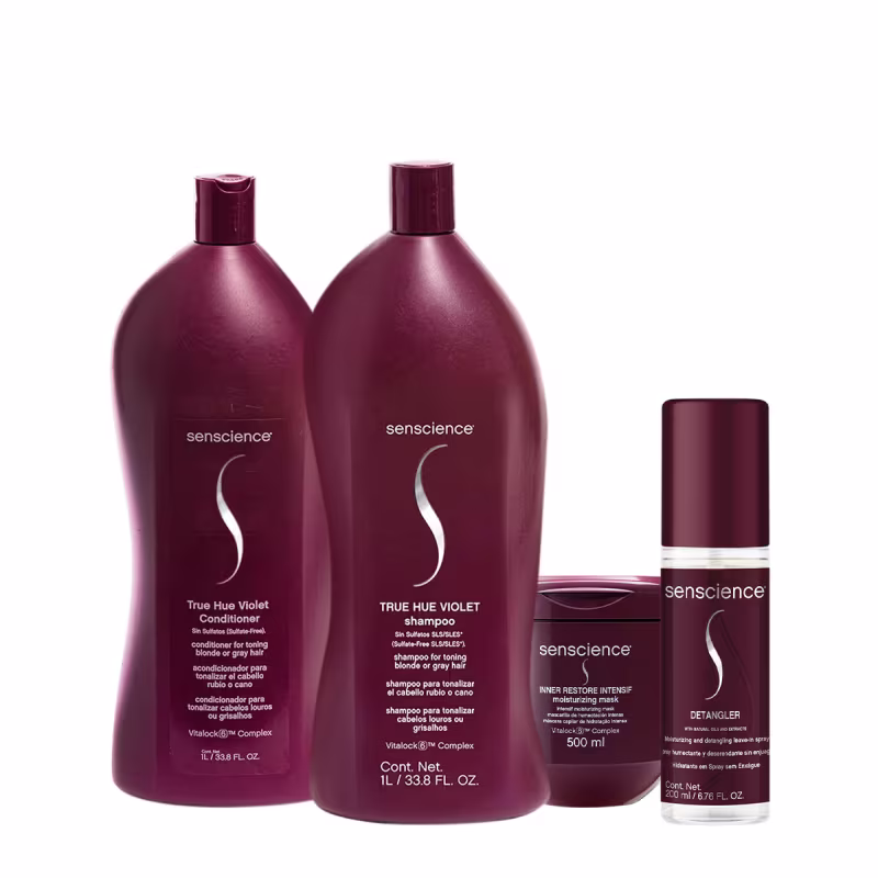 Kit Senscience True Hue Violet Shampoo Condicionador Máscara 500 Leave-in (4 produtos)