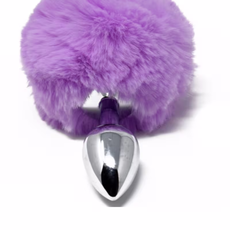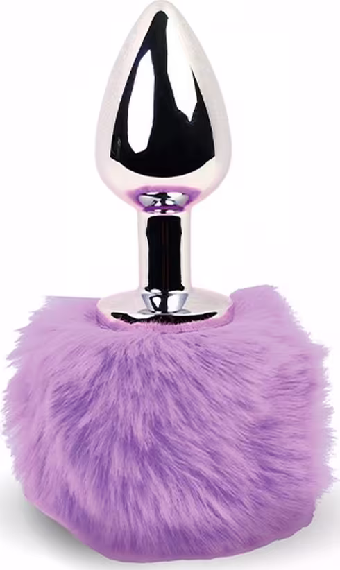 Plug Anal Pompom Tamanho P 7cm x 2,8cm em Aço Rabo de Coelho Lilás