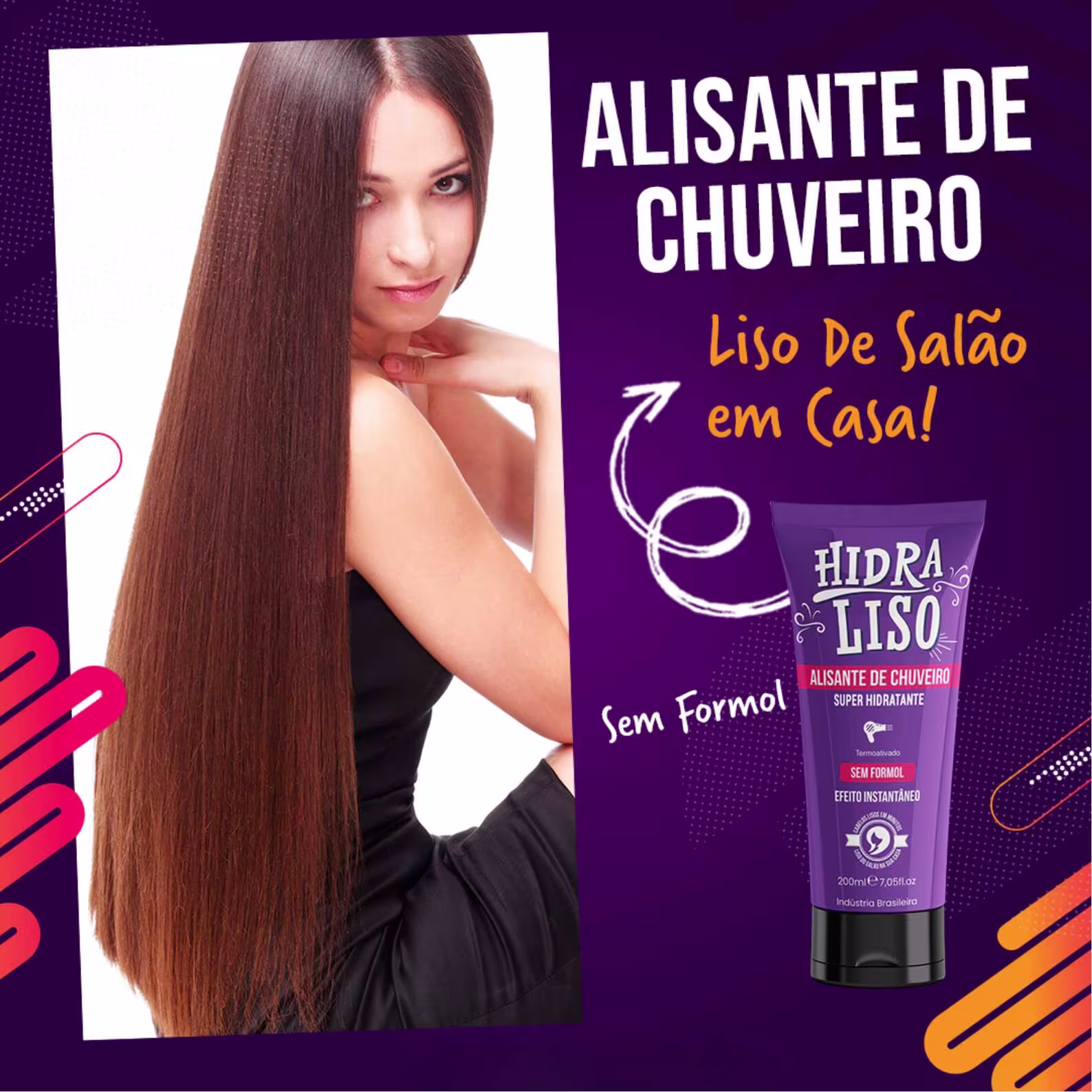 Hidraliso - Progressiva de Chuveiro Organica (200ml) é um alisante capilar 100% natural, ideal para quem deseja cabelos lisos e sedosos sem precisar sair de casa. Sua fórmula livre de substancias nocivas