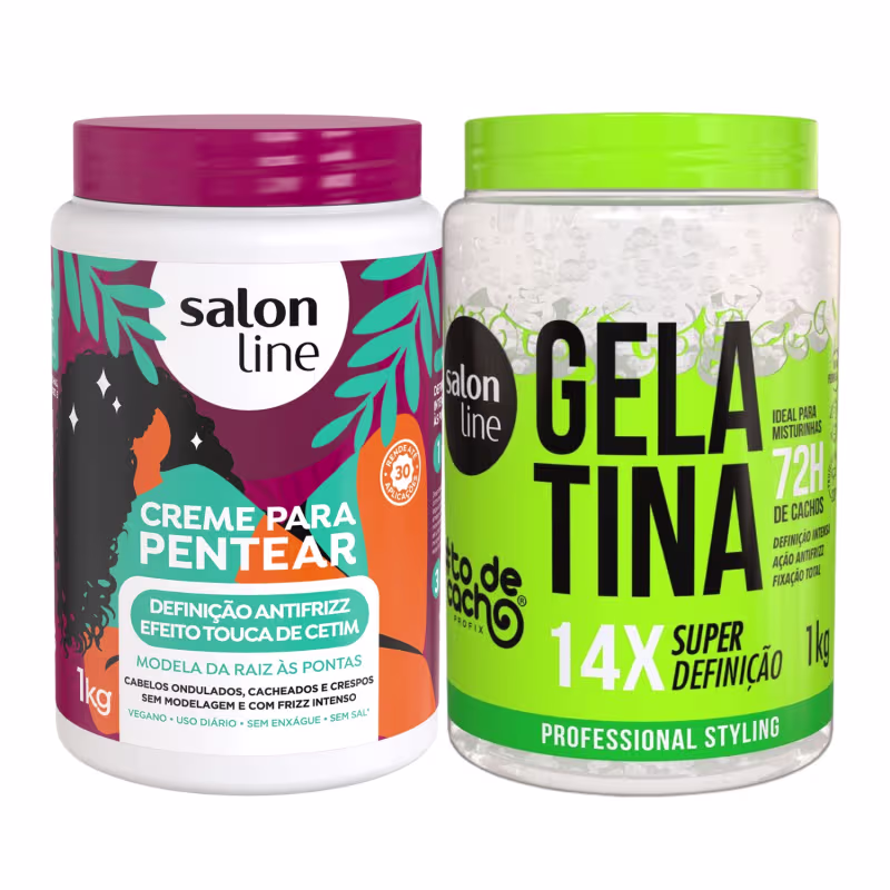 Quer cachos super definidos e hidratados o dia todo? O Kit Gelatina e Creme Pentear Cacho Define Hidrata Salon Line é o aliado perfeito para quem busca definição, hidratação e controle dos cachos de forma prática e eficaz. Tenha cachos maravilhosos com facilidade!