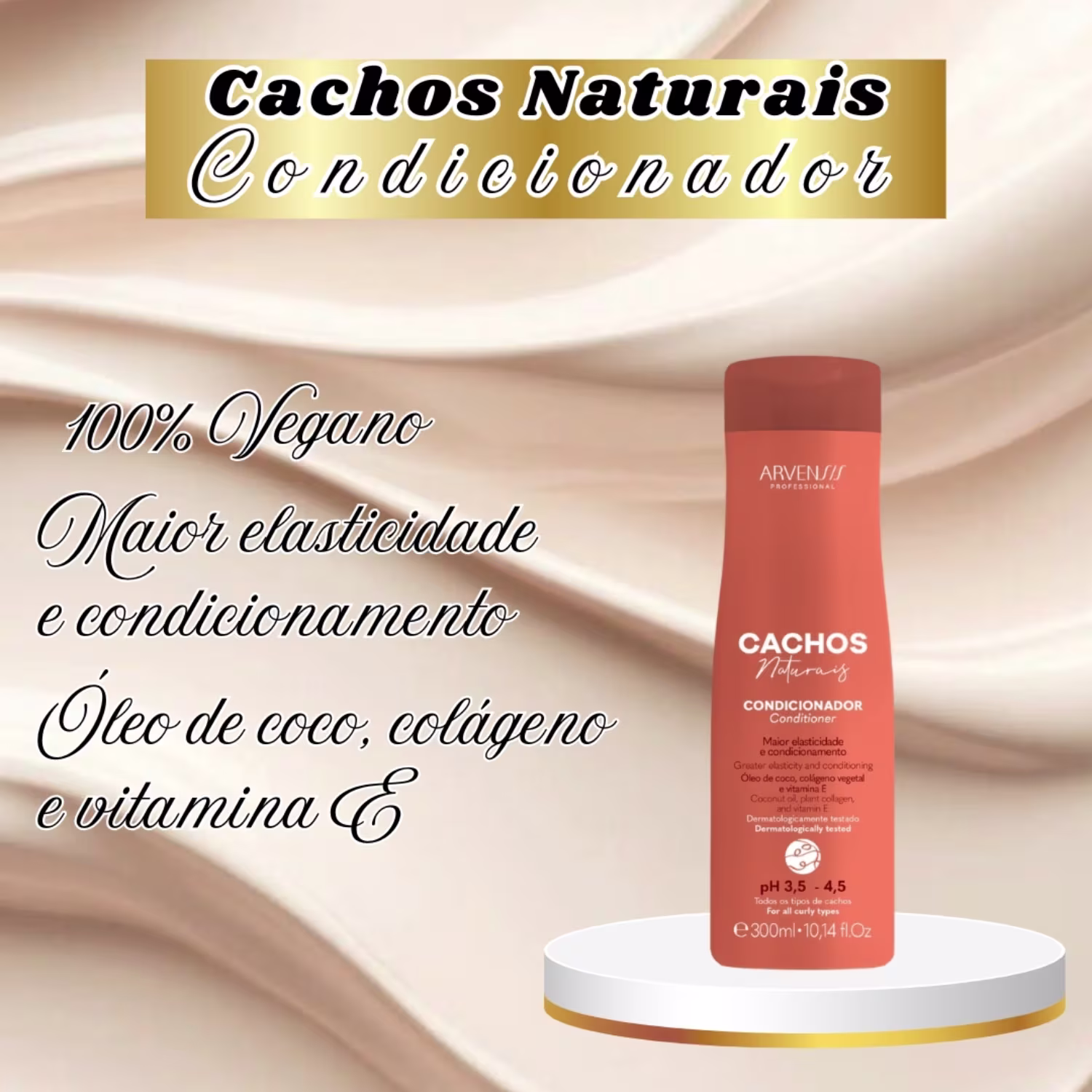 O Condicionador Cachos Naturais foi desenvolvido com uma formulação especial, ideal para a hidratação de todos os tipos de cabelos cacheados. Elaborado através da perfeita combinação de Óleo de Coco, Colágeno Vegetal e Vitamina E, o Condicionador Cachos Naturais proporciona inúmeros benefícios como nutrição avançada, reparação dos fios danificados, condicionamento equilibrado, aumento da elasticidade, maciez e brilho extra. Sua ação protetora ainda confere resistência e controle de frizz, além de manter a umidade natural para cachos nutridos e radiantes.