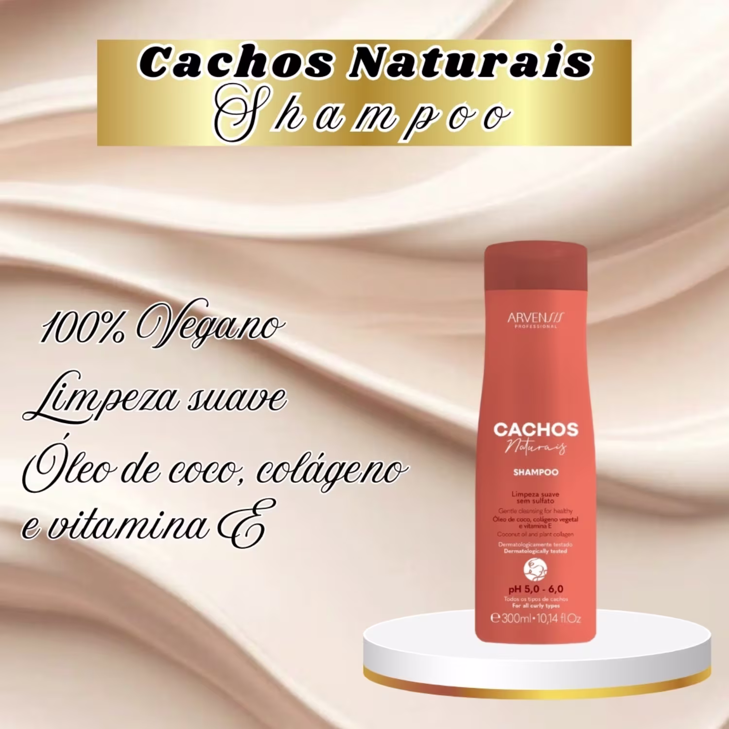 O Shampoo Cachos Naturais foi desenvolvido com uma formulação livre de sulfato e sal, especial para a limpeza suave de todos os tipos de cabelos cacheados. Elaborado através da perfeita combinação de Óleo de Coco, Colágeno Vegetal e Vitamina E, o Shampoo Cachos Naturais proporciona inúmeros benefícios como reparação dos fios danificados, aumento da elasticidade, maciez e brilho extra. Sua ação protetora ainda confere resistência, formação de filme e controle de frizz, além de manter a umidade natural para cachos nutridos e radiantes.