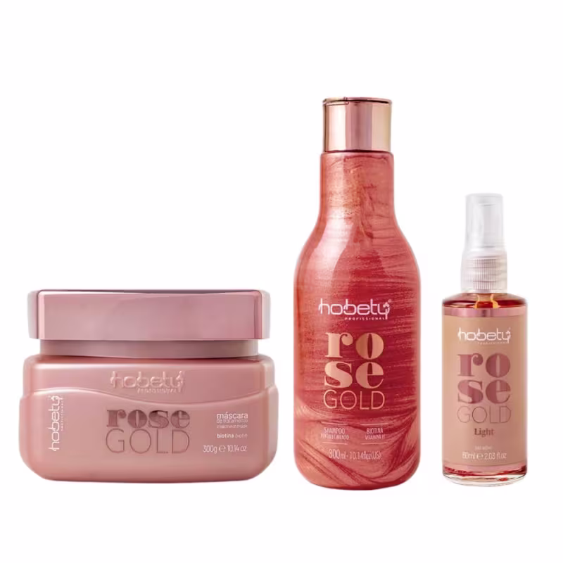 Máscara Rose Gold 300g:Máscara de tratamento para cabelos fragilizados e quebradiços que precisam de crescimento e fortalecimento. Auxilia na saúde e na hidratação do couro cabeludo, estimulando a produção da queratina, para os fios já existentes, deixando-os macios, brilhantes e saudáveis.