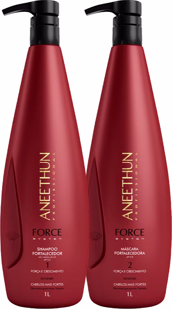 Por que escolher o Kit Aneethun Force? O Kit Aneethun Force é a escolha perfeita para quem deseja um tratamento intensivo e eficaz em casa. Com shampoo e máscara de 1L, você garante um cuidado duradouro e profissional para seus cabelos, proporcionando força, hidratação e brilho. Transforme seus fios com a qualidade e eficácia da linha Aneethun!