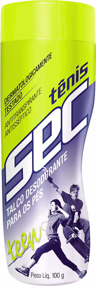 O Talco para Pés Tênis Sec Teen age com eficiência para combater os odores causados pela transpiração, deixando os seus pés e os seus calçados protegidos. Possui uma fórmula com ação antitranspirante e antisséptica, sendo ideal para o uso diário. Ele é fácil de ser aplicado e pode ser carregado facilmente na bolsa ou na mochila, para que você o tenha em mãos sempre que precisar. Com ele, seus pés vão ter uma sensação de frescor e fragrância maravilhosa todos os dias.