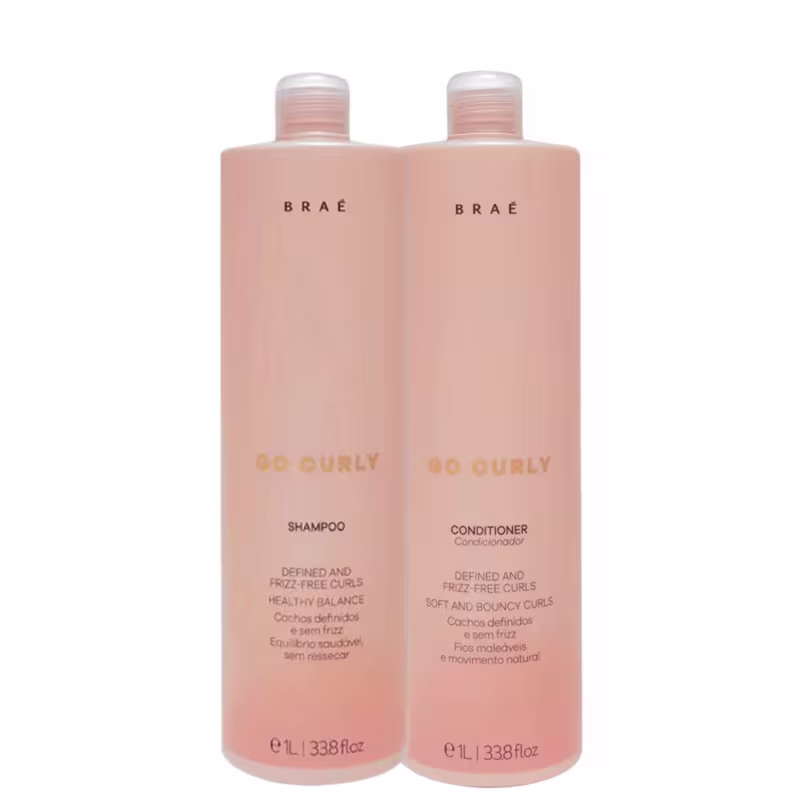 Braé Go Curly - Shampoo 1l: elimina resíduos sem ressecar os fios, deixando o couro cabeludo saudável e protegido.