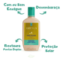 ÓLEO DE COCO: Possui grandes quantidades de vitamina E, o que o torna um excelente agente antioxidante e confere alta emoliência aos cabelos com sensorial suave e aveludado.
