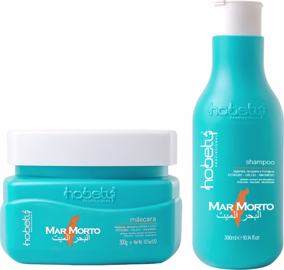 Shampoo Mar Morto 300ml: Desenvolvido com oligoelementos similares aos presentes no Mar Morto, higienizando de forma intensa, recuperando e fortalecendo as cerdas capilares, auxiliando o processo de proteção contra radicais livres, proporcionando cabelos com brilho e volume controlados, saudáveis e maleáveis. Máscara Mar Morto 300g: Desenvolvido com oligoelementos similares aos presentes no Mar Morto, esta Máscara Capilar prossegue com a higienização dos fios, recuperando, hidratando e nutrindo as cerdas capilares, proporcionando cabelos com brilho e volume controlados, saudáveis e maleáveis.