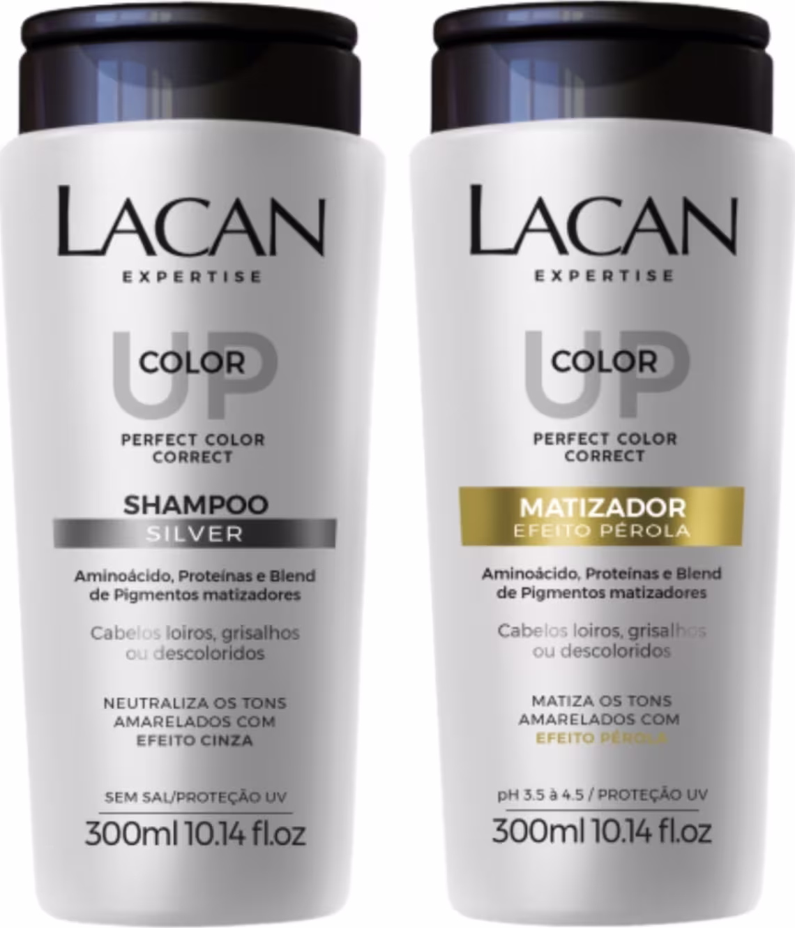 O SHAMPOO SILVER COLOR UP LACAN, contém blend de pigmentos cinza que neutralizam tons amarelados