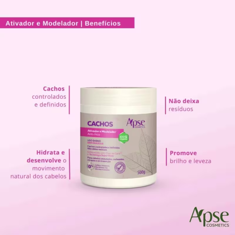 Controle Eficiente do Frizz: Com a ação combinada desses produtos, você experimentará um controle eficaz do frizz. A Máscara pH Control atua na redução da porosidade dos fios, enquanto o Ativador de Cachos APSE hidrata profundamente, mantendo os cachos disciplinados e livres de frizz durante todo o dia.
