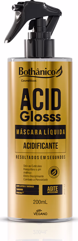 AGITE ANTES DE USAR. Após lavar os cabelos com o Shampoo Banho de Brilho Acid Gloss, borrife a Máscara líquida sobre os fios, do comprimento às pontas. Massageie enluvando bem os fios, sentindo o produto formar um creme durante a aplicação. Deixe agir alguns segundos. Enxágue bem o produto. Se sentir necessidade, use o Condicionador Selagem de Brilho Acid Gloss.