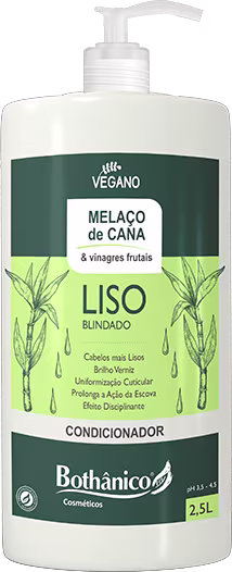 Não sei o CEPCom combinação exclusiva de Melaço de Cana e Vinagres Frutais, a Bothânico Cosméticos oferece cuidado total para os cabelos lisos - naturais ou alisados. O melaço de cana puro, extraído da cana-de-açúcar, é rico em minerais e açúcares que auxiliam na hidratação e na selagem dos fios. Os vinagres frutais, obtidos da maçã, do limão e do tamarindo, contém antioxidantes e ácidos que reequilibram o pH da cutícula, promovendo alinhamento e efeito disciplinante.