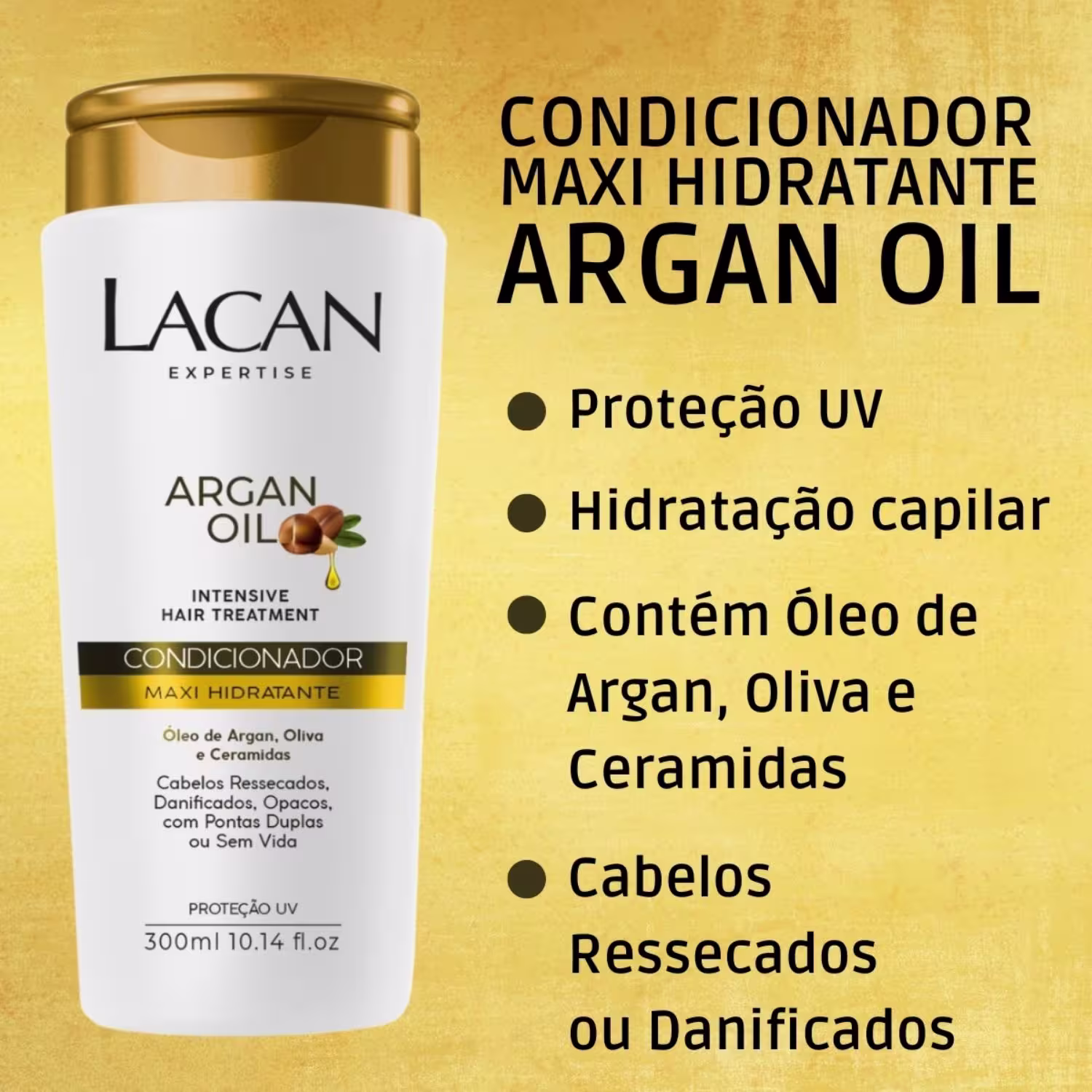 Trazendo o que há de mais moderno em cosmetologia e buscando inspiração na sabedoria milenar, a Lacan desenvolveu a linha de tratamento MAXI HIDRATANTE ARGAN OIL. Rica em óleo de argan, mundialmente conhecido como o ouro de marrocos, óleo de oliva e ceramidas. Possui alto poder de proteção, ação antienvelhecimento e hidratação intensa. Fórmulas hidrolisadas de fácil absorção pela fibra capilar, riquíssimas em vitaminas e ômegas 3 e 6, promovem fios mais brilhantes, macios, fortalecidos, protegidos e disciplinados.